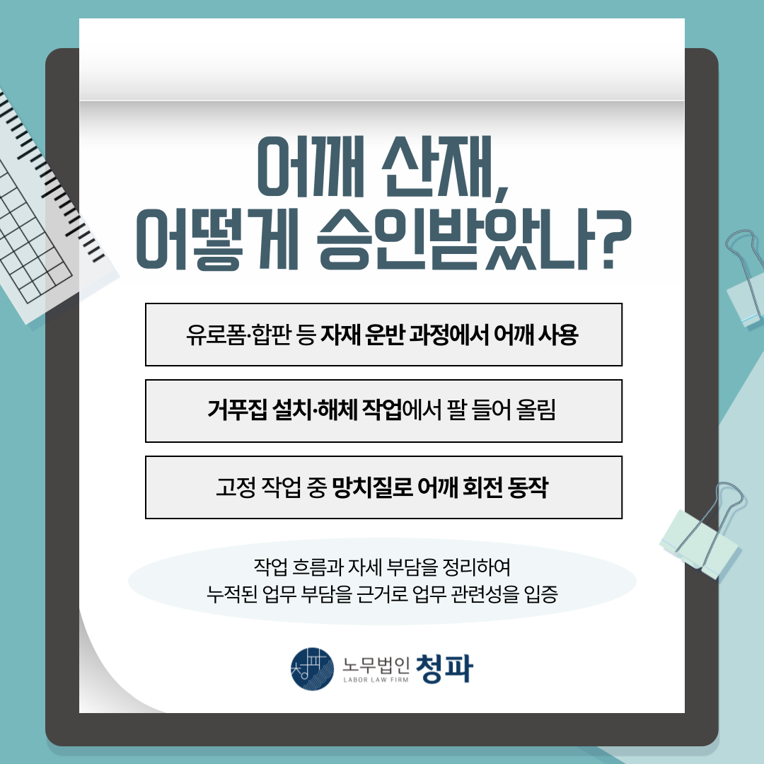 관절 질환 건설현장 형틀목공 어깨 산재 승인 사례