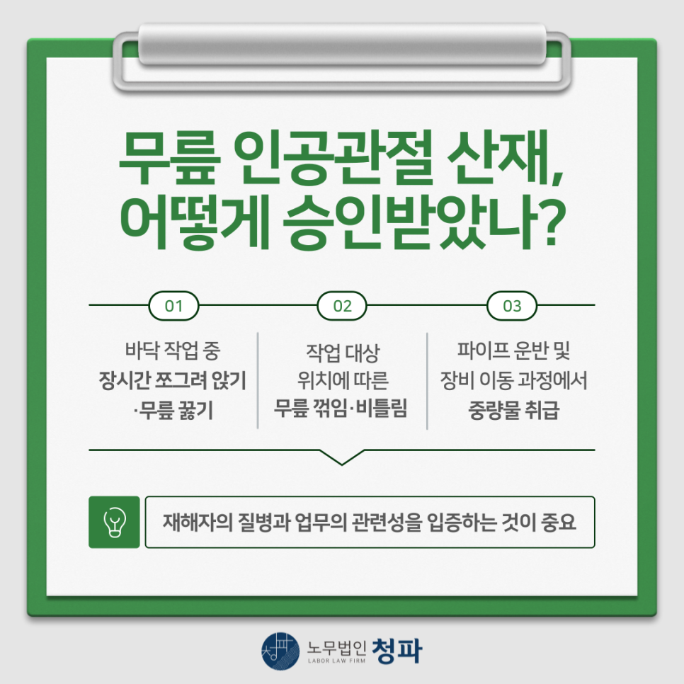 관절 질환 철구조물 용접공 사상공 무릎 인공관절 산재 승인 사례