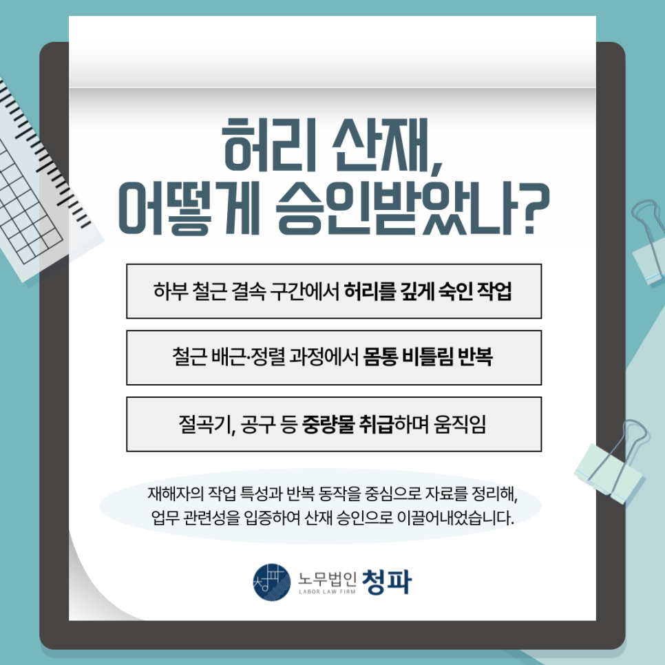 관절 질환 건설현장 철근공 허리(요추) 산재 승인 사례