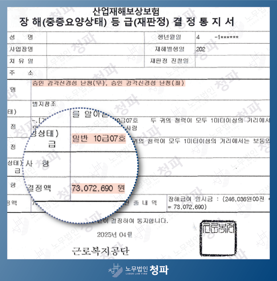 노무법인 청파는 산재 승인 이후에도 요양 관리부터 휴업급여, 장해급여까지