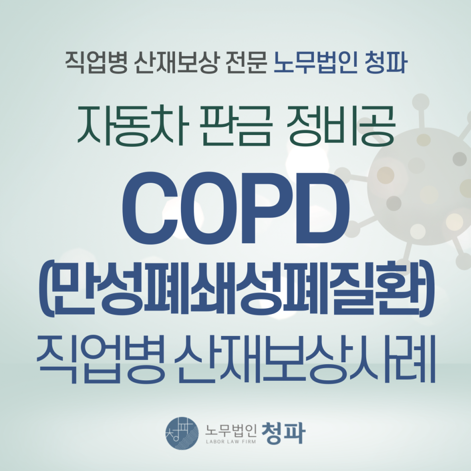 직업성 폐질환 자동차 정비공 만성폐쇄성폐질환(COPD) 상병보상연금 산재 승인 사례