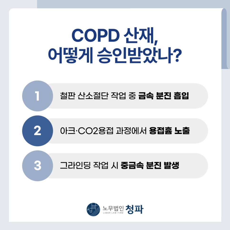 '만성폐쇄성폐질환(COPD)' 진단을 받은 뒤 노무법인 청파에 산재를 의뢰하셨습니다.